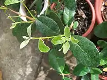 The fruit has been widely grown in New Zealand since the 1920s, and it has become a popular garden tree. [9] It is commonly available in season from March to June.[10][11] In New Zealand, the pollinators of this plant are bees, bumblebees, and medium-sized birds. The silvereye is a pollinator in the cooler parts of the South Island; the blackbird and the Indian myna, which feeds on the sweet, fleshy flower petals, are pollinators further north. In some areas where the species has been introduced, however, the trees have been unproductive due to lack of pollinators. The shrub has very few insect pests, although guava moth is a problem in northern New Zealand.[12]