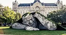 The art piece was displayed on the grounds of Gresham Palace during the Art Market Budapest Festival. The art became an internet sensation.[1] Hungarian artist constructed the giant sculpture out of polystyrene and it was installed in 2014. The artist called the work an extremely large example of contemporary art.[2]