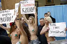 - "Ukraine women go topless against UEFA, prostitution". 3 November 2011. Archived from the original on 2 April 2012.