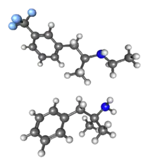 The drug combination fenfluramine/phentermine, usually called fen-phen, was an anti-obesity treatment that utilized two anorectics. Fenfluramine was marketed by American Home Products (later known as Wyeth) as Pondimin, but was shown to cause potentially fatal pulmonary hypertension and heart valve problems, which eventually led to its withdrawal and legal damages of over $13 billion.[1] Phentermine was not shown to have harmful effects.[1]