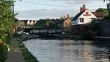 The Grand Union Canal runs through the southern outskirts of the town and Fenny Lock is located in Simpson Road area to the east of Watling Street. It is notable both for the manually operated swing bridge which crosses the lock and for the very small rise in the lock (around 30 cm (12 in), the shallowest on the Grand Union Canal network). This was deemed necessary by the canal engineers because the next section northwards of the canal could not be made adequately watertight at reasonable cost without it.[10] The level persists from this lock for eleven miles, through what is now Milton Keynes, through to the next lock at Cosgrove. A little further south of the canal bridge, Watling Street crosses the river Ouzel (a tributary of the river Great Ouse: it was the marshy ford across this river that gave the town its name.