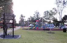 In 2005, when the Wivenhoe Alliance completed its upgrade of nearby Wivenhoe Dam, South East Queensland’s primary water supply and flood mitigation dam, the upgrade was completed six months ahead of schedule and 10% below budget.[28] Wivenhoe Alliance approached the then Esk Shire Council to see if the money could be used in a project that would benefit the community of Fernvale. The Fernvale Futures Partnership was formed. The Fernvale Memorial Park was upgraded[29] and the Fernvale Futures Complex (27.4555°S 152.6523°E) was built on the site of old Fernvale railway station (27.4555°S 152.6522°E) and was designed to have a similar shape; it was opened in September 2006.[30] In 2011, Fernvale Futures Complex was converted into a temporary shelter and Flood Relief Centre for families affected by the Brisbane River flood.