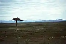 The nests are made of ground debris such as sticks, branches, and cattails. Old nests will be refurbished, or nests of other species may be taken over and refurbished with sticks being added on top of the old nests. Odd items such as paper, rubbish, barbed wire, cornstalks, plastic and steel cable have been incorporated into nests. Bark from trees and shrubs will be used for lining along with grasses and cow dung. Bits and pieces of greenery are often added to the nest. Prior to the removal of the bison from this bird's range, nesting material often included bison bones, fur[20] and dung. Both sexes are involved with building the nests and bringing materials, but the male seems to be more involved in retrieving materials while the female arranges them in the structure.