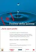 In its second edition, from 28 October to 8 November 2004, part of the calendar of official events of Genoa European Capital of Culture and into the events recognised by the European Union in the context of the European Week of Scientific Culture (ESW), the Science Festival faces the theme of Exploration: from the new frontiers reached in the most various fields of research to the progressive tendency in many sciences to leave their specific boundaries and to compare themselves with other fields.