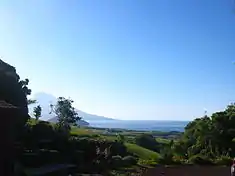 ![]() The coast of Feteira, showing the rocky cliffs and vista of Monte da Guia (to the east), Faial Island | |