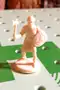 Feudal is won by either capturing your opponent's castle or slaying all of his royalty (i.e. King, Prince, and Duke). Each of the six armies contains a castlepiece, one each of the royalty, one Squire, one Archer, two Knights, two Sergeants, and four Pikemen. The castlepiece has two parts, the castle and the castle green (entrance), each of which takes up one board space. To capture the castle, a figure must first be moved onto the green and wait one turn before moving into the castle proper. A player may defend his/her castle by placing a figure (except the archer or squire) inside.[2]