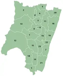 Fianarantsoa Province was divided into five regions of Madagascar - Atsimo-Atsinanana, Amoron'i Mania, Haute Matsiatra, Ihorombe and Vatovavy-Fitovinany. These five regions became the first-level administrative divisions when the provinces were abolished in 2009. They are sub-divided into 23 districts: