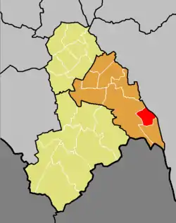 The ward of Fieldway (red) shown within the Croydon Central constituency (orange) within the London Borough of Croydon (yellow)