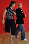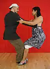 | Overturned gancho (gancho nuevo) | The follower places her leg between the leader's legs. This move can be led from overturned back ocho. See also enganche. | ![]() | ||