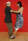 | Volcada con adorno | Side volcada | Off-axis move in which the woman leans forward to the man's side. She can do decorations with her leg. | ![]() | |