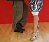 Steps related to foot play steps spice up the walk and the dance. These are ways for leaders and followers to challenge and tease their partners and make dance more playful. There are different shapes of these moves and their look depends on how crowded is the venue or the follower's interpretation of the lead.