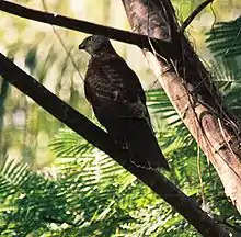 Fiji woodswallows are preyed upon by the Fiji race of the peregrine falcon and the young are vulnerable to the Fiji goshawk.[7] Fiji woodswallows are highly aggressive and will attack these raptors, often at risk to themselves, as well as introduced mammals such as cats and dogs.[2] They will also harass the introduced common myna and red-vented bulbul to drive away from nesting and roosting sites, but display less aggression towards other harmless native species such as the Fiji parrotfinch.
