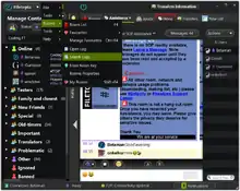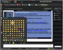 Filetopia FX features a graphic chat, which integrates security features, file sharing, file search, a graphic and searchable log system, hundreds of emoticons and ability for the user to add their own emoticons, even animated ones and capture the emoticons used by others.