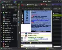 Filetopia is also a full featured Instant Messenger software, that allows for different online modes and status lines, as well as messaging offline users. File sharing is also fully integrated with this functionality.