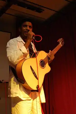 Filipe Santo (born 5 January 1959) is a Santomean singer who is currently one of the country's greatest singers. His songs relates to different kinds of love, the daily lives of Santomeans, corruptions and society in general. [1][2][3]