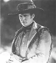 Central to the FBO identity were Westerns and the studio's major cowboy star, Fred Thomson. In both 1926 and 1927, he ranked number two in the Exhibitors' Herald survey of the "Top Stars of the Year," right behind Tom Mix.[45] With Thomson's personal contract with Kennedy due to expire in mid-1927,[46] Kennedy—sending that Thomson had reached the peak of his popularity and seeing a financial opportunity for FBO—arranged a four-picture deal with Paramount Pictures, one of the major Hollywood studios. The deal essentially ceded Thomson to the rival studio. For FBO's guarantee of $75,000 in financing per picture, Thomson would star in Paramount productions. In return, Paramount would return the $75,000 in financing plus an additional $100,000 to FBO and pay Thomson's $15,000 a week salary.[47]