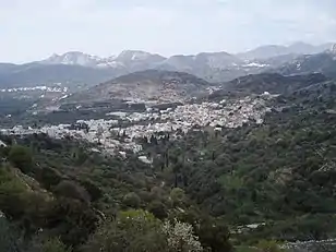 Filoti (in Greek: Φιλώτι or Φιλότι; officially: Φιλότιον) is a semi-mountainous village of central Naxos, Greece, with a population of 1,477 residents (census 2011[2]), located at the foot of Mt. Zas (1,004 m), at an altitude of 400 meters, about 18.2 kilometres (11.3 mi) from the city of Naxos.[3][4] It is located on the slopes of two hills and consists of three settlements, Rachidi, Klefaros and Lioiri.[4] Its stand out is the Orthodox church of Panagia Filotitissa that is dedicated to the Assumption of the Virgin, a basilica built in 1718 in the place of an old Byzantine church.[5][6][7] The economy of the village is mainly based on livestock products, secondarily in agriculture and tourism. It has a Primary School (since 1838), a Professional High School, a Multipurpose Regional Doctor, a Citizen Service Center (KEP), a Post office, a dentist and a pharmacy.