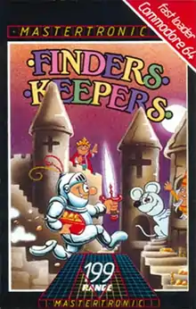 Finders Keepers is a video game written by David Jones and the first game in the Magic Knight series. It was published on the Mastertronic label for the ZX Spectrum, Amstrad CPC, MSX, Commodore 64, and Commodore 16 in 1985. Published in the United Kingdom at the budget price of £1.99. Finders Keepers is a platform game with some maze sections.