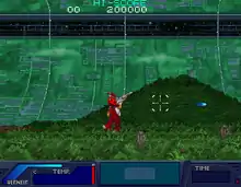 The player must take control of a Transformer-like battlemech known as Sygnus, who is equipped with a laser cannon, Vernier jump-jets, auto-targeting, and an automatic cooling system. Pushing that joystick twice in the same direction will make Sygnus switch from a march to a dash while he is moving, and the player may not make him change the direction that he is facing in mid-air. He has no "life meter", just a temperature meter which increases when he is hit, and decreases when he is not hit - but, if the timer should run out, his cooling device will break. If he should overheat, the game will immediately be over. The game is made of four stages which must be finished twice.
