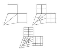 In mathematics, a finite subdivision rule is a recursive way of dividing a polygon or other two-dimensional shape into smaller and smaller pieces. Subdivision rules in a sense are generalizations of regular geometric fractals. Instead of repeating exactly the same design over and over, they have slight variations in each stage, allowing a richer structure while maintaining the elegant style of fractals.[1] Subdivision rules have been used in architecture, biology, and computer science, as well as in the study of hyperbolic manifolds. Substitution tilings are a well-studied type of subdivision rule.