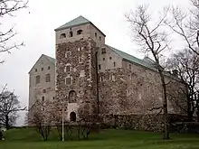 Swedish rule in the area of modern-day Finland started as a result of the Northern Crusades. The Finnish upper class lost its position and lands to new Swedish and German nobility and to the Catholic Church.[1] The Swedish colonisation of some coastal areas of Finland with Christian population was a way to retain power in former pagan areas that had been conquered. It has been estimated that there were thousands of colonists.[2] Colonisation led to several conflicts between the colonists and local population which have been recorded in the 14th century. In colonised areas the Finnish population principally lost its fishing and cultivation rights to the colonists.[3][4] Though the Finnish provinces were an integral part of the Kingdom of Sweden with the same legal rights and duties as the rest of the realm, Finnish-speaking Swedish subjects faced comparative challenges in dealing with the authorities as Swedish was established as the sole official language of government. In fact, it remained a widely accepted view in Sweden proper that the Finns were in principle a separate and conquered people and therefore not necessarily entitled to be treated equitably with Swedes. Swedish kings visited Finland rarely and in Swedish contemporary texts Finns were often portrayed as primitive and their language inferior.[5] Approximately half of the taxes collected in Finland was used in the country, while the other half was transferred to Stockholm.[6]