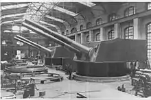The four 254 mm (10 in) Bofors guns were massive for vessels of this size, and they could hurl a 225 kg (496 lb) shell up to 31 kilometres (19 mi). The secondary artillery consisted of eight 105 mm (4 in) dual-purpose Bofors guns in four turrets. These were the primary defense against fast torpedo boats and aircraft. Additionally, the ships were equipped with four 40 mm anti-aircraft guns (initially British-made "pom-pom" guns, which, after mediocre performance in the Winter War, were replaced with Bofors guns) and two Madsen 20 mm cannons (later increased to eight).