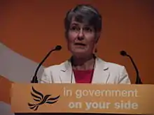 Fiona Jane Hall MBE (née Cutts; born 15 July 1955 in Swinton, Lancashire) is a British politician who was a Member of the European Parliament (MEP) for North East England. She served as leader of the Liberal Democrats in the European Parliament[1] from 2009 to 2014. She was elected to the European Parliament in 2004, and re-elected in 2009, coming in third behind Labour and Conservative candidates with 17% of the vote, the highest of any UK Liberal Democrat candidate.[2][3][4]