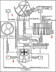 The resulting directions, known as a firing solution, would then be fed back out to the turrets for laying. If the rounds missed, an observer could work out how far they missed by and in which direction, and this information could be fed back into the computer along with any changes in the rest of the information and another shot attempted.
