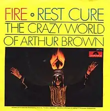 "Fire" is a 1968 song written by Arthur Brown, Vincent Crane, Mike Finesilver and Peter Ker.[2] Performed by The Crazy World of Arthur Brown, it was released as a single and on the band's debut album, also called The Crazy World of Arthur Brown. The single became a transatlantic hit, reaching number one in the UK and Canada and number two in the United States, while hitting the top 10 in markets across Europe.