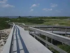 The Otis Pike Fire Island High Dune Wilderness, also known as Fire Island Wilderness, is a 1,380-acre (5.6 km2; 2.16 sq mi) wilderness area on Fire Island.[5] It is approximately seven miles (11 km) long and located on the eastern side of Fire Island. The United States Congress designated the Otis Pike High Dune Wilderness Area in 1980. The wilderness area is named for former New York Congressman Otis G. Pike, who co-sponsored the bill which created the Fire Island National Seashore and worked hard to secure public support and the legislation's passage through Congress to establish the new national park. It is the only federally designated wilderness area in New York State and one of the smallest wilderness areas managed by the National Park Service.[5]