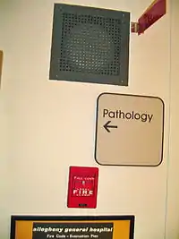 - Audible textual appliances, which are employed as part of a fire alarm system that includes Emergency Voice Alarm Communications (EVAC) capabilities. High-reliability speakers are used to notifying the occupants of the need for action in connection with a fire or other emergency. These speakers are employed in large facilities where general undirected evacuation is considered impracticable or undesirable. The signals from the speakers are used to direct the occupant's response. The system may be controlled from one or more locations within the building known as Fire Wardens Stations or from a single location designated as the building Fire Command Center. Speakers are automatically actuated by the fire alarm system in a fire event, and following a prealert tone, selected groups of speakers may transmit one or more prerecorded messages directing the occupants to safety. These messages may be repeated in one or more languages. Trained personnel activating and speaking into a dedicated microphone can suppress the replay of automated messages in order to initiate or relay real-time voice instructions.[13]