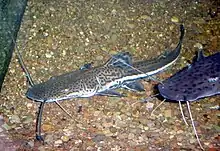 The firewood catfish (Sorubimichthys planiceps) a species of South American pimelodid catfish, is the sole member of the genus Sorubimichthys. Known by locals along the Amazon Basin as peixe-lenha,[1] the firewood catfish is so called because it is of little eating value and is often dried and used for firewood.[2]