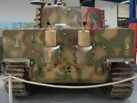 One of the Tiger I firing ports (right) was converted into a loader escape hatch and the other covered with an armor plug and eventually deleted from the design to improve production time and reduce costs.[5]