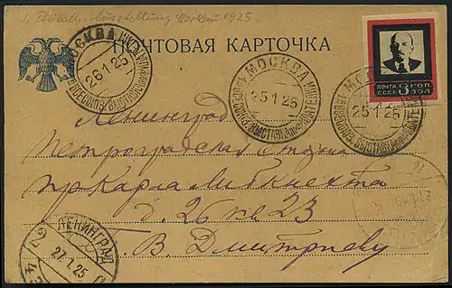 The exhibition was organised from 15 December 1924 to 15 February 1925. This was done by the Presidium of the All-Union Philatelic Association and Board of the All-Russian Society of Philatelists. The combined exhibition was meant to prepare formation of the All-Union Society of Collectors. The society was to be under the direction of Feodor Chuchin, the Commissioner for Philately and Scripophily.[3]