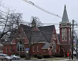 The First Baptist Church is a historic church building at 457 Main Street in Stoneham, Massachusetts, housing an evangelical congregation. The church was built in 1892 and added to the National Register of Historic Places in 1984.[1] It is one central Stoneham's three 19th-century churches, and is a fine local example of Queen Anne architecture.[2]