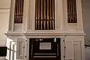 First Church's 1847 G compass parlor-type organ was installed in 1861. It sits in the choir loft at the rear of the sanctuary, with the organist's position facing away from the sanctuary.