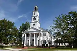 First Presbyterian Church and Churchyard is a historic Presbyterian church on New Street between Middle and Hancock Streets in New Bern, Craven County, North Carolina. It was built in 1820, and is a rectangular frame church building with two tiers of windows. It features a tetrastyle pedimented Ionic order portico and projecting four stage tower topped by an arcaded octagonal belfry.[2] During the Civil War, the church was converted into a military hospital by the Union forces.[3]