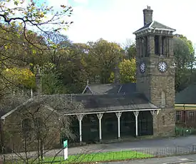 The lodge has an striking clock tower which in its early days stood at the main entrance to the park at the then farthest extent of Firth Park Road. The lodge incorporated a park keeper's house and refreshment rooms. In June 1973 the building was designated a Grade II listed building,[2] and today it provides community facilities, having been refurbished after an arson attack in 1995. In 1949 the main entrance to the park was moved onto Hucklow Road near the main shopping area of the newly established suburb of Firth Park. Formal gardens were also laid out at this time, and in the 1970s a children's playground was constructed.[3]