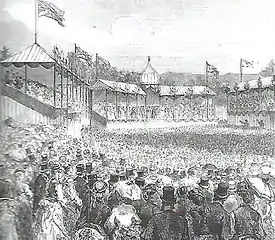 The park was opened on 16 August 1875 by Albert Edward, the then Prince of Wales, and Princess Alexander. The royal couple were the guests of Firth, staying at his mansion Oakbrook in the city. The weekly newspaper The Graphic reported that the royal visitors arrived at Firth Park in a procession of forty carriages from Victoria station with the band of the Hallamshire Volunteer Rifle Corps playing the "Firth Park March". The royal couple were seated in a temporary pavilion designed to look like a Turkish minaret and 15,000 school children were assembled in front to sing the national anthem. At the time of the royal opening much of the park was still unfinished and Firth spent an additional £9,000 before a second ceremony was performed on 22 August 1876 to mark the completion.[1]