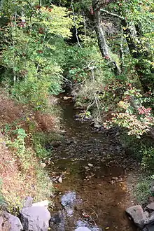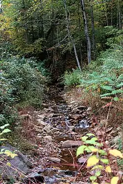 ![]() Fisher Run looking upstream in its lower reaches | |