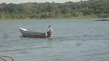 Fishing gear and methods used in Uganda are both modern and traditional. Fish in Uganda are caught mostly with plank canoes and to a lesser extent, fiberglass boats. Some dugout canoes are also still being used. The plank canoes are generally 4–12 m (13.12–39.37 ft) in length and dugout canoes average 3.5 m (11.48 ft). The total number of vessels is about 17,000 and about 20% of these are motorized.[1] Artisanal fishermen use various gear including gillnets, seines and hook and line. In a number of localities, traditional methods including baskets, traps and mosquito nets continue to be used.[2] The gear commonly used includes gillnets, lift nets, scoop-nets used in light fishing; hook and line gear (hand-lines, fishing rods or tackles) and fish traps.[3]