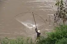 The fishing industry in the land-locked country of Laos is a major source of sustenance and food security to its people dwelling near rivers, reservoirs and ponds. Apart from wild capture fisheries, which is a major component of fish production, aquaculture and stocking are significant developments in the country. Historically, fishing activity was recorded in writings on the gate and walls of the Wat Xieng Thong in Luang Prabang dated 1560.[1] For many Laotians, freshwater fish are the principal source of protein.[2] The percentage of people involved in regular fishing activity is very small, only near major rivers or reservoirs, as for most of the fishers it is a part-time activity.[3]