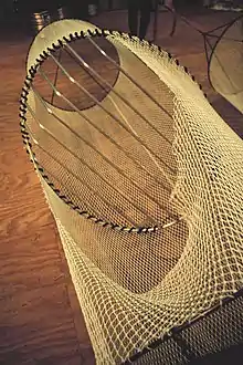 In Norse mythology the sea giantess Rán uses a fishing net to trap lost sailors. References to fishing nets can also be found in the New Testament.[12] Jesus Christ was reputedly a master in the use of fishing nets. The tough, fibrous inner bark of the pawpaw was used by Native Americans and settlers in the Midwest for making ropes and fishing nets.[13][14] The archaeological site at León Viejo (1524–1610) has fishing net artifacts including fragments of pottery used as weights for fishing nets.