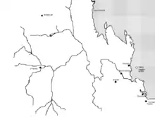 From source to mouth, the Fitzroy River is joined by thirty-six tributaries including the Mackenzie River – with its tributaries the Nogoa River, Comet River, Isaac River and its tributary Connors River; and the Dawson River – which has two tributaries, the Don River and Dee River.[2][6]