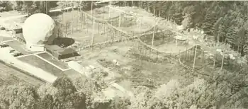 ![]() FCRAO Radome-enclosed 14-m Telescope, on the Prescott Peninsula in the Quabbin Reservoir. Circa 1977. | |