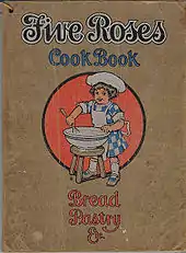 The Five Roses Cook Book was first published in 1913 by Lake of the Woods Milling Company. It is the longest-running recipe collection from a Canadian flour company.[6] The cookbook features Five Roses flour. In 2003, a printed copy of the 1967 edition was produced, with an historical introduction by Elizabeth Driver, a food historian who has written extensively on cookbooks. The original edition had recipes submitted by women in a contest run by the Lake of the Woods Milling Company and cost approximately 40 cents.[7]