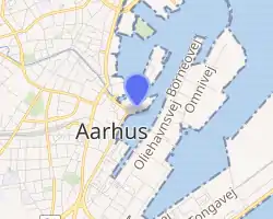 The Five Sisters (Danish: De fem søstre) is a building and silo complex in Aarhus, Denmark which is an Industrial Heritage Site of Denmark. It is situated on the Mellemarmen pier on the industrial section of the Port of Aarhus in Aarhus city center. The silos represent the transition from manual to mechanized labor during the second wave of industrialization in the early 20th century and is symptomatic of the relationship between agriculture, industry and transport in the city. The Five Sisters were the first reinforced concrete structure to be erected in Aarhus and at the time it was the only building apart from the cathedral to rise above the city.