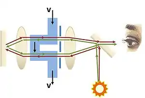 A Fizeau interferometer[1] is an interferometric arrangement whereby two reflecting surfaces are placed facing each other. As seen in Fig 1, the rear-surface reflected light from the transparent first reflector is combined with front-surface reflected light from the second reflector to form interference fringes.