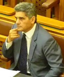 He secured a seat in the Parliament in the 2002 general elections as a candidate on the Fidesz National List.[2] Since May he has been participating in the work of the Committee on Human Rights, Minority and Religion as well as the Committee on European Integration. He has held the post of deputy parliamentary group leader since 15 May 2004. He was elected member of the Szolnok Assembly in the local elections in the autumn of 2002.[1] He was elected MP from the national list in the 2006 elections.[2]