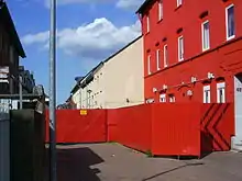 Flaßhofstrasse was originally called Eintrachtstrasse. Prostitution on the upper part of this street occurred prior to 1914. The street's reputation soon became known beyond the city. When the Ruhr uprising broke out in defence of the Kapp Putsch in March 1920, the Ruhr Red Army, whose goal was the establishment of a Dictatorship of the proletariat, put into service the so-called "Red Cross sisters" as medical personnel, who consisted exclusively of prostitutes who were recruited "especially from Oberhausen".[3] Some of them, the Karbol-Mäuschen (carbolic mice), took part in the looting of Schloss Sythen on March 21, 1920, which was then in the possession of the Count Otto von Westerholt and Gysenberg (1875-1920).[4][5] "Red Cross Sisters" of the Red Ruhr Army, who were found with a pistol were shot by the Freikorps Epp, who had been deployed against the Ruhr uprising.[6][7]